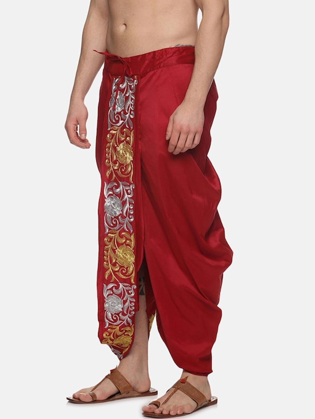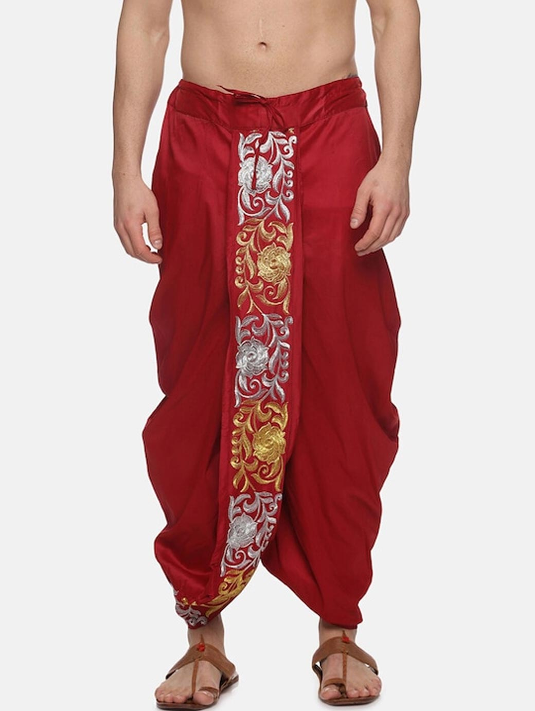 Men Maroon Embroidered Dhotis Pants