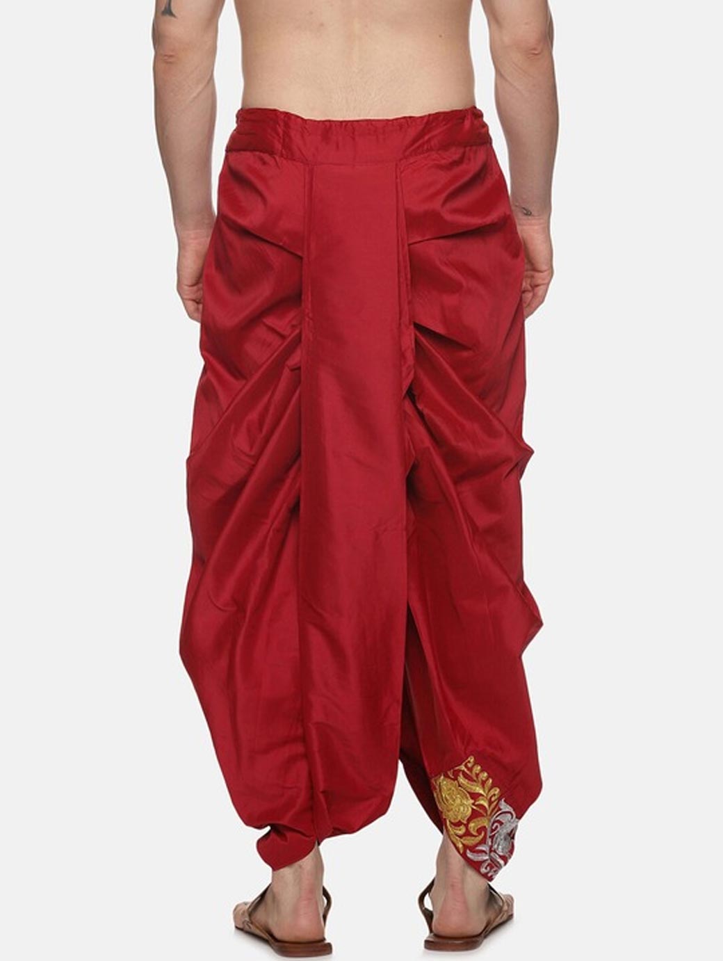 Men Maroon Embroidered Dhotis Pants