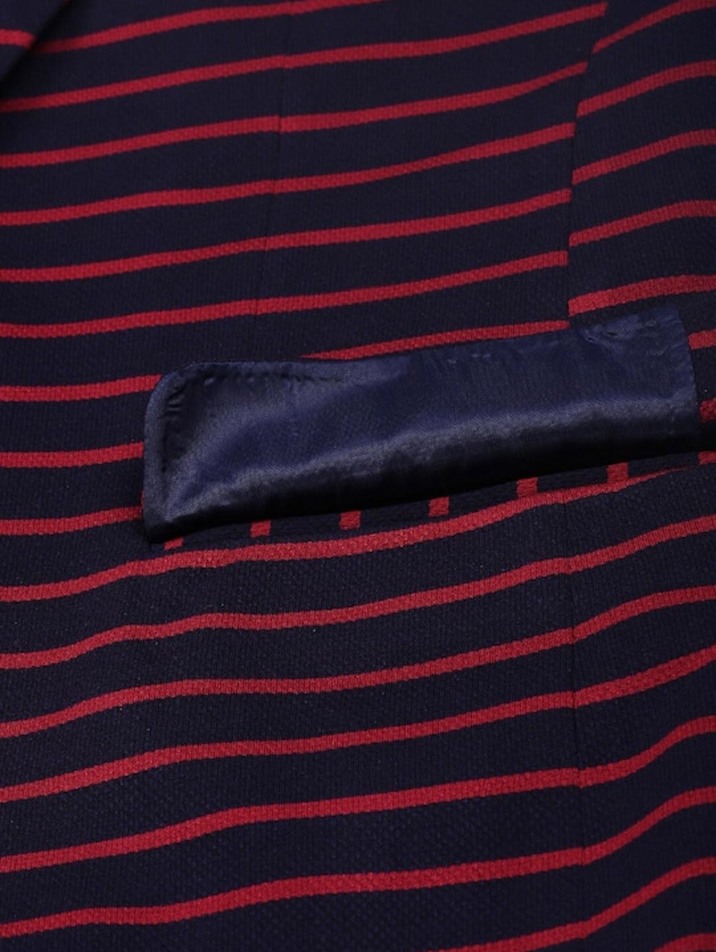 Navy blue & Red Striped regular-fit casual blazer, has a notched lapel, long sleeves, single-breasted with double button closure, two flap pockets, one welt pocket and a double-vented back hem